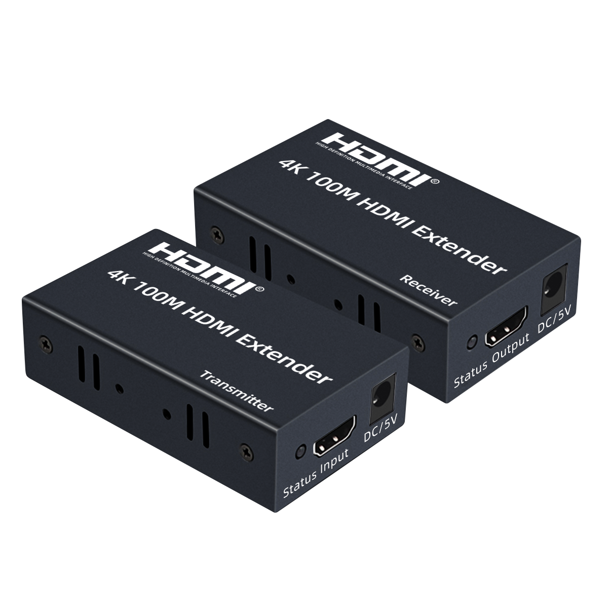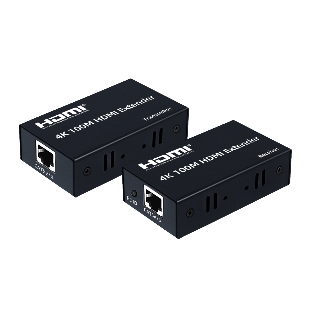 • Include a transmitter and a receiver, used in pairs via one CAT5e/6 cable to send video and audio.